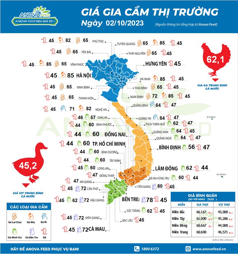 - Tiếp tục rớt giá trên nhiều tỉnh thành, giao dịch cao nhất ở ngưỡng 56.000vnđ/kg còn rất ít ở vài tỉnh miền Bắc: Thái Nguyên, Hà Nội, Hưng Yên, Hải Dương.
