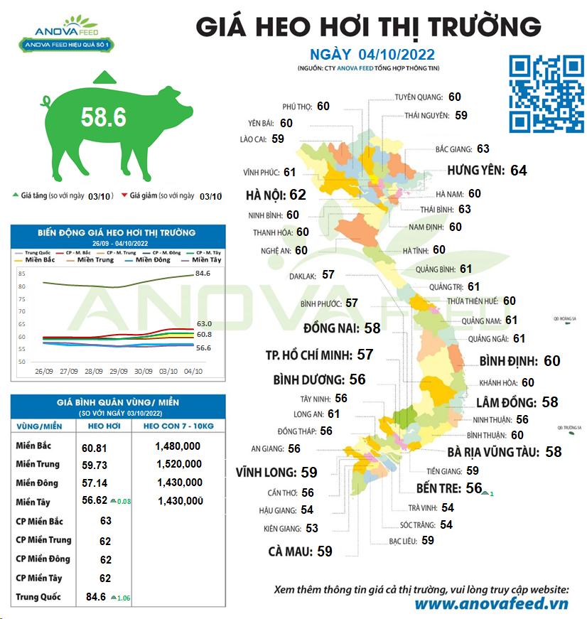 ANOVA FEED - GIÁ HEO THỊT NGÀY 22/10, MIỀN NAM TĂNG