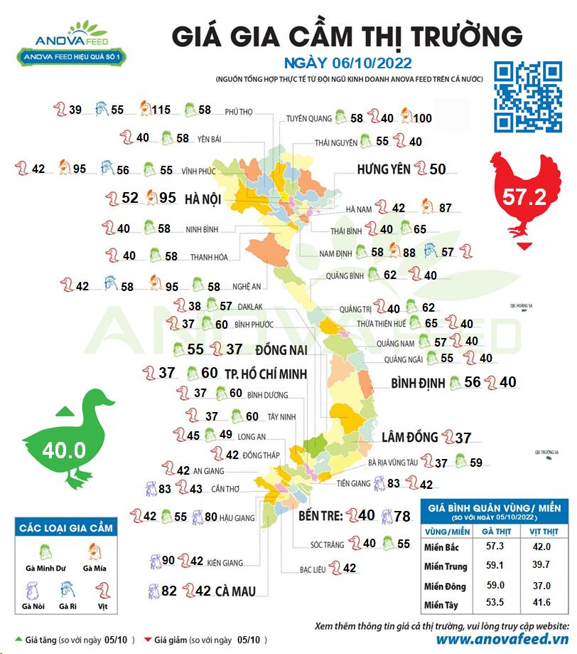 - Cả 3 miền Bắc- Trung- Nam tăng giảm trái chiều, mức giá toàn quốc dao động trong khoảng 53.000-63.000vnđ/kg.