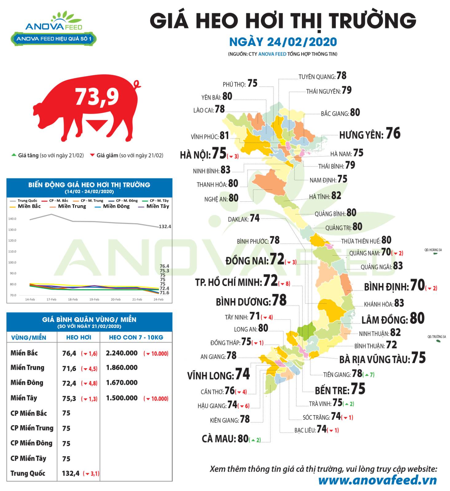 Tin tức thị trường ngày 24/2, giá heo hơi tại miền Nam có nhiều biến động giảm giá ngày đầu tuần. Hiện nhiều chuồng đã hết heo to, chủ yếu chỉ còn ở các công ty lớn bán ra thị trường. Với mức giá hiện nay vẫn đảm bảo mức lãi lớn cho bà con chăn nuôi nhưng việc tái đàn vẫn cần thêm thời gian và cẩn trọng do vẫn xuất hiện lẻ tẻ các ổ dịch tại nhiều địa phương.