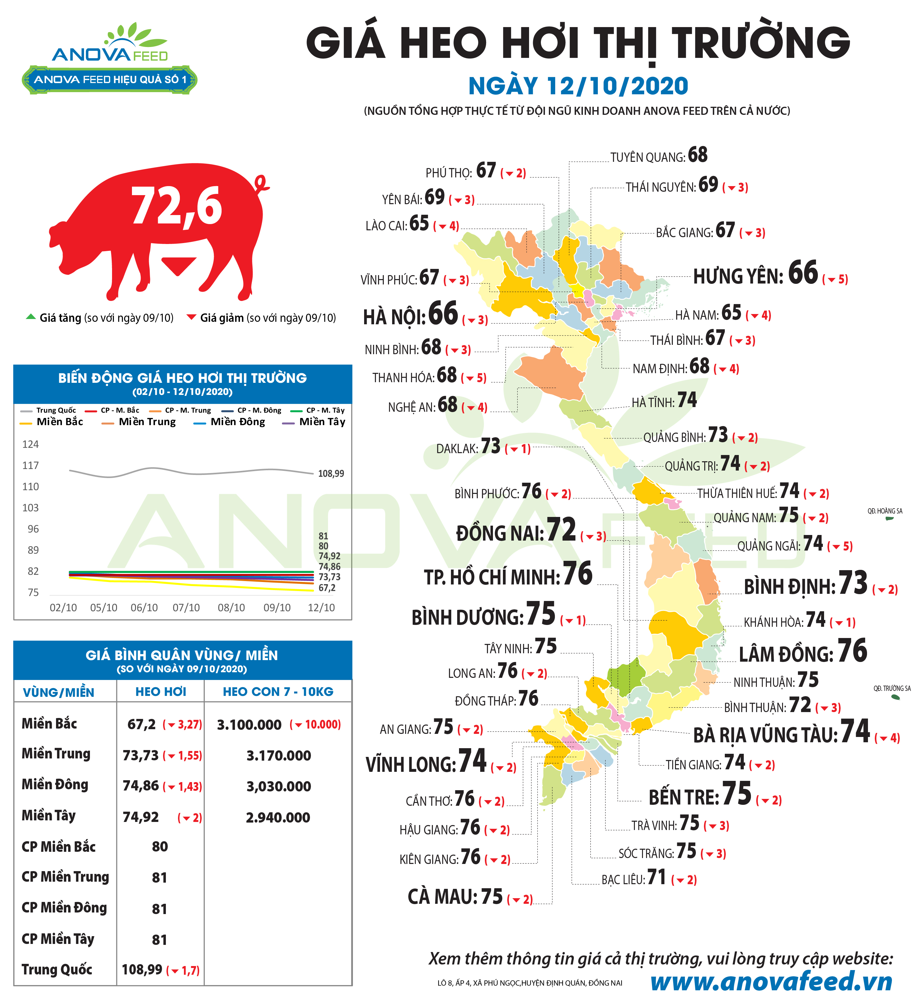 Giá heo hơi những ngày gần đây liên tục giảm mạnh, về mốc 70.000 đồng/kg, thậm chí có nơi tại khu vực miền Bắc, giá heo hơi có nơi xuống mốc 66.000 đồng/kg. Nguyên nhân heo hơi giảm giá là do sức mua trên thị trường yếu và áp lực cạnh tranh với nguồn heo Thái Lan nhập khẩu.