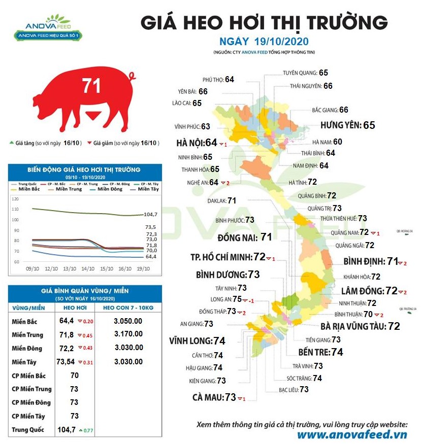 Giá heo hơi tại nơi có đàn heo lớn nhất cả nước là Đồng Nai hiện khoảng 70.000 - 71.000 đồng/kg, thậm chí có vùng giảm xuống dưới 70.000 đồng/kg. Theo một số người chăn nuôi, giá heo hơi ngày càng giảm là do lượng heo cung ứng ra thị trường tăng nhanh. Sau khi một số địa phương công bố hết dịch tả lợn châu Phi, bà con đã tập trung tái đàn và hiện đã có sản phẩm tái đàn bán cho thương lái.