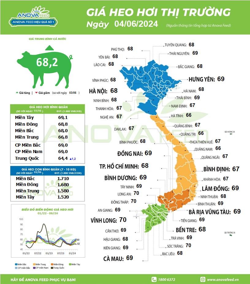 - Giá heo hơi hôm nay 04/06/2024, toàn quốc giữ giá.