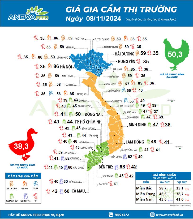 - Miền Bắc đi ngang, giữ giá trong khoảng 62.000 - 64.000 đồng/kg.