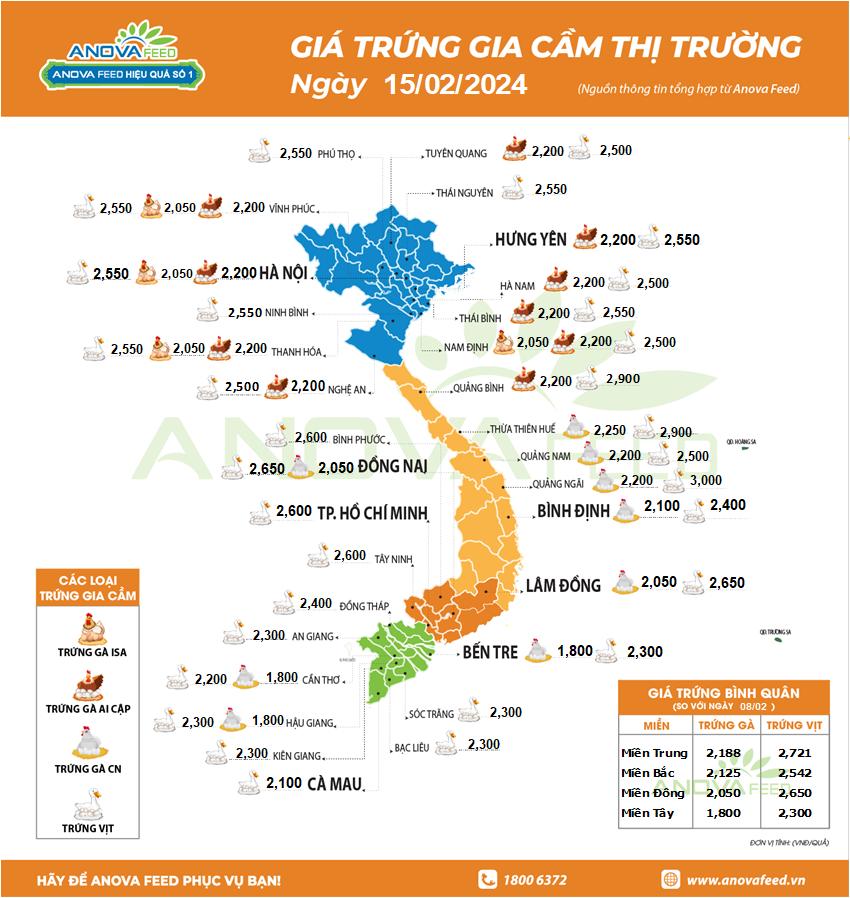 - Các tỉnh miền Bắc - Trung giữ giá không thay đổi, dao động trong khoảng 54.000 - 59.000vnđ/kg, riêng tại miền Bắc vẫn neo ở mức giá cao trung bình 57.800vnđ/kg.