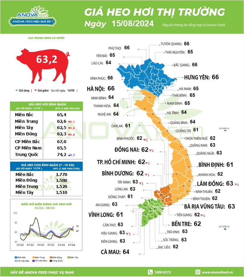 - Giá heo hơi hôm nay 15/08/2024, khó đảo chiều tăng.