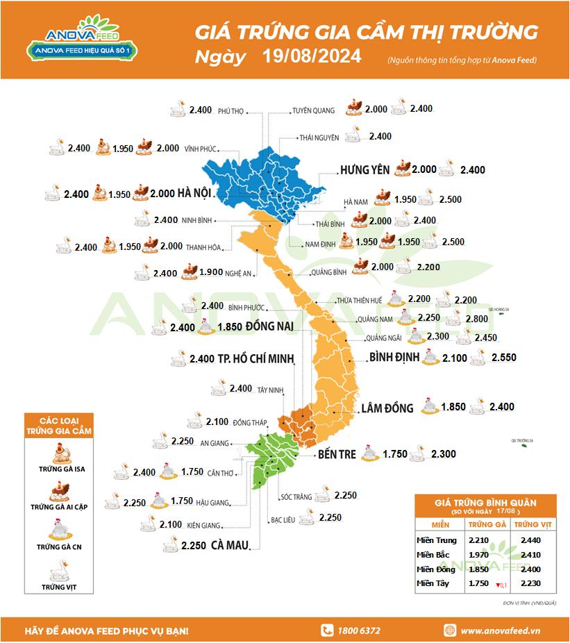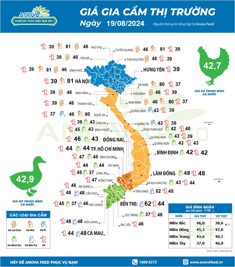 - Miền Trung - Tây Nguyên đi ngang, các tỉnh: Thanh Hóa, Nghệ An, Quảng Bình,... giữ giá 64.000 đồng/kg; Quảng Trị, Bình Định, DakLak thấp nhất vùng - giao dịch giá 61.000 đồng/kg.