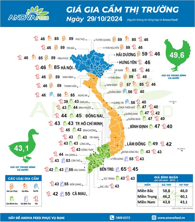 - Miền Bắc giữ giá đi ngang, dao động trong khoảng 61.000 - 63.000 đồng/kg.