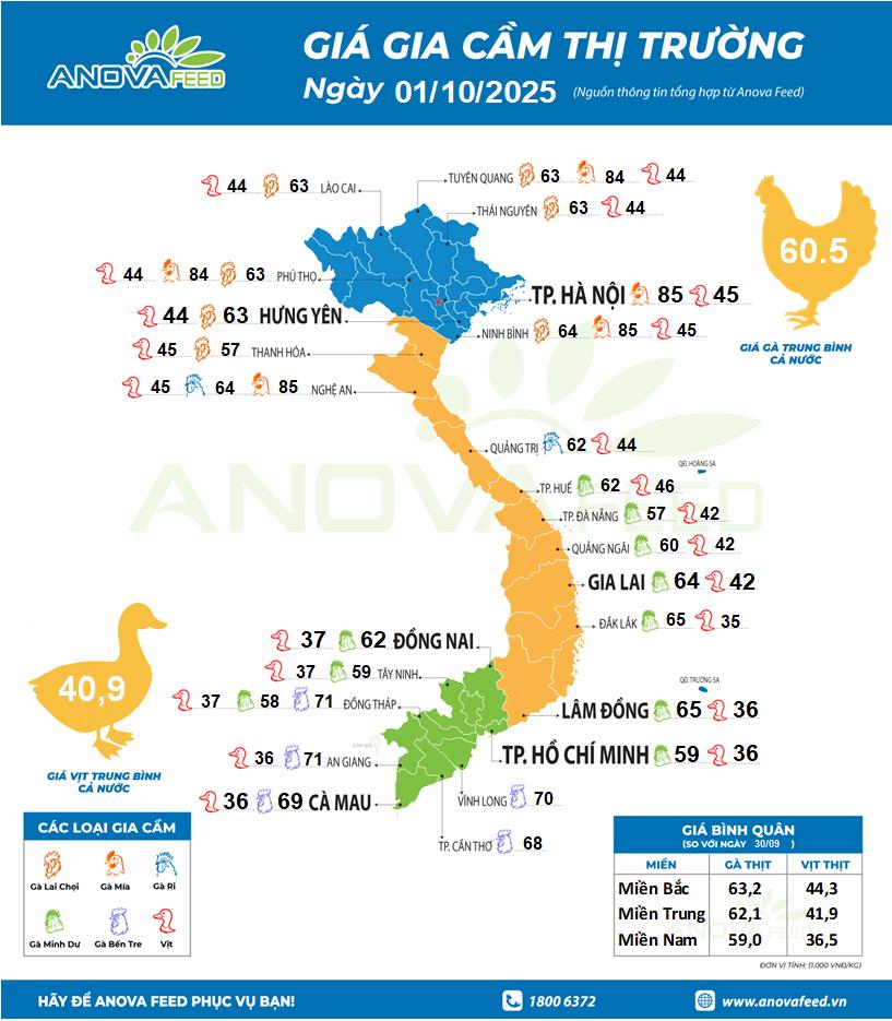 - Miền Trung giữ giá không đổi, duy nhất tỉnh Lâm Đồng hạ nhẹ 1 giá - về 56.000 đồng/kg.