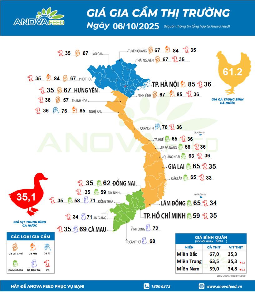 - Miền Bắc giảm 1 giá tại: Lai Châu, Điện Biên về 53.000 đồng/kg; Tuyên Quang, Cao Bằng và Thái Nguyên giảm về 54.000 đồng/kg; Bắc Ninh hạ còn 55.000 đồng/kg.