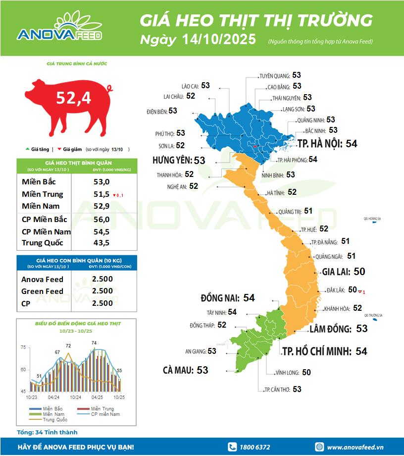 - Miền Bắc giữ giá không đổi, các tỉnh dao động trong khoảng 52.000 - 54.000 đồng/kg.
