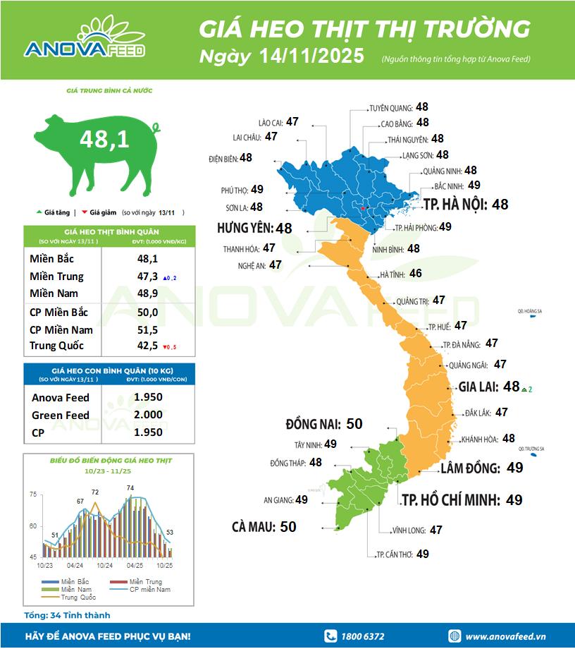 - Miền Nam đi ngang quanh mức trung bình 48.900 đồng/kg.