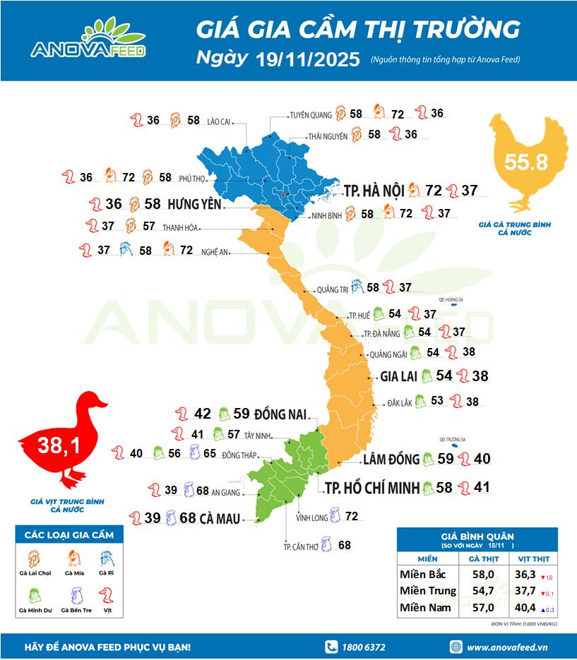- Miền Bắc tăng thêm tại nhiều tỉnh: Phú Thọ, Hà Nội, Hưng Yên,... đạt giá 51.000 đồng/kg; Lào Cai, Cao Bằng và Lạng Sơn tăng đạt 50.000 đồng/kg.
