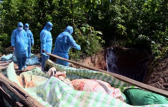 Cơ quan chức năng tiêu hủy heo bị dịch. Ảnh: Đ.T.
